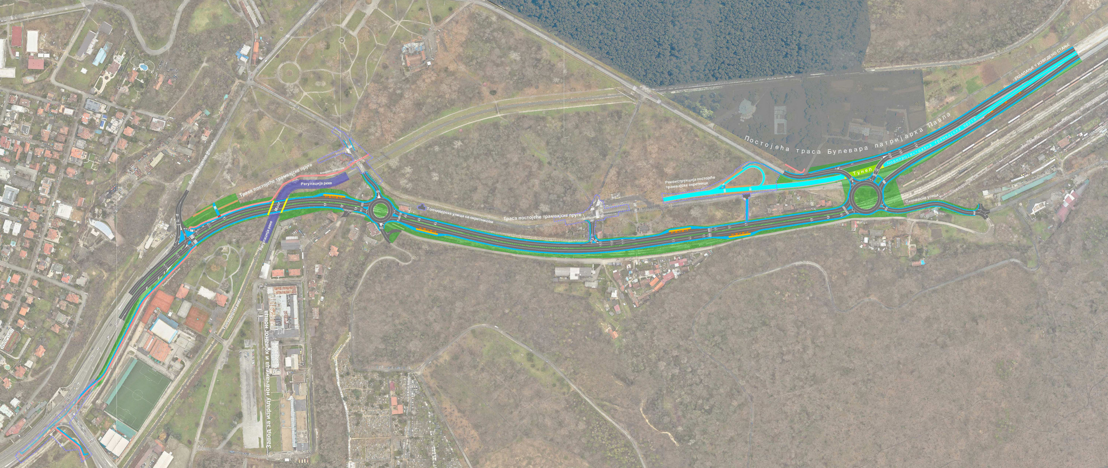 Саобраћајница Булевар патријарха Павла са припадајућом инфраструктуром, од Булевара војводе Мишића до изведене деонице је дужине 1940 метара, има пројектоване две саобраћајне траке по смеру и три раскрснице. Са Булеваром војводе Мишића саобраћајница се укршта „Т“ раскрсницом, док се две кружне раскрснице налазе у зони укрштања са Топчидерском улицом и у зони постојећег подвожњака ка Пионирској улици, где се налази и нов трамвајски тунел дужине 72 метра. На месту преласка трасе преко Топчидерске реке налази се мост распона 25 метара и ширине 21 метар. Пратећа инфраструктура обухвата, између осталог, 4000 метара водовода, 5330 метара атмосферске и фекалне канализације, црпну станицу, регулацију Топчидерске реке у делу преласка саобраћајнице, јавну расвету, постављање електроенергетских и телекомуникационих каблова и озелењавање.